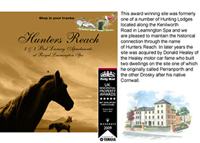 This development consists of 13 contemporary, high end apartments with a 4 bed coach house located to the rear of the splendid Victorian style apartment housing. This development won the Daily Mail best residential property award for Warwickshire 2009. Gary Davis branded the site, produced all marketing sales brochures, advertising, photography and web site material. WON THE DAILY MAIL NEWSPAPER AWARD.